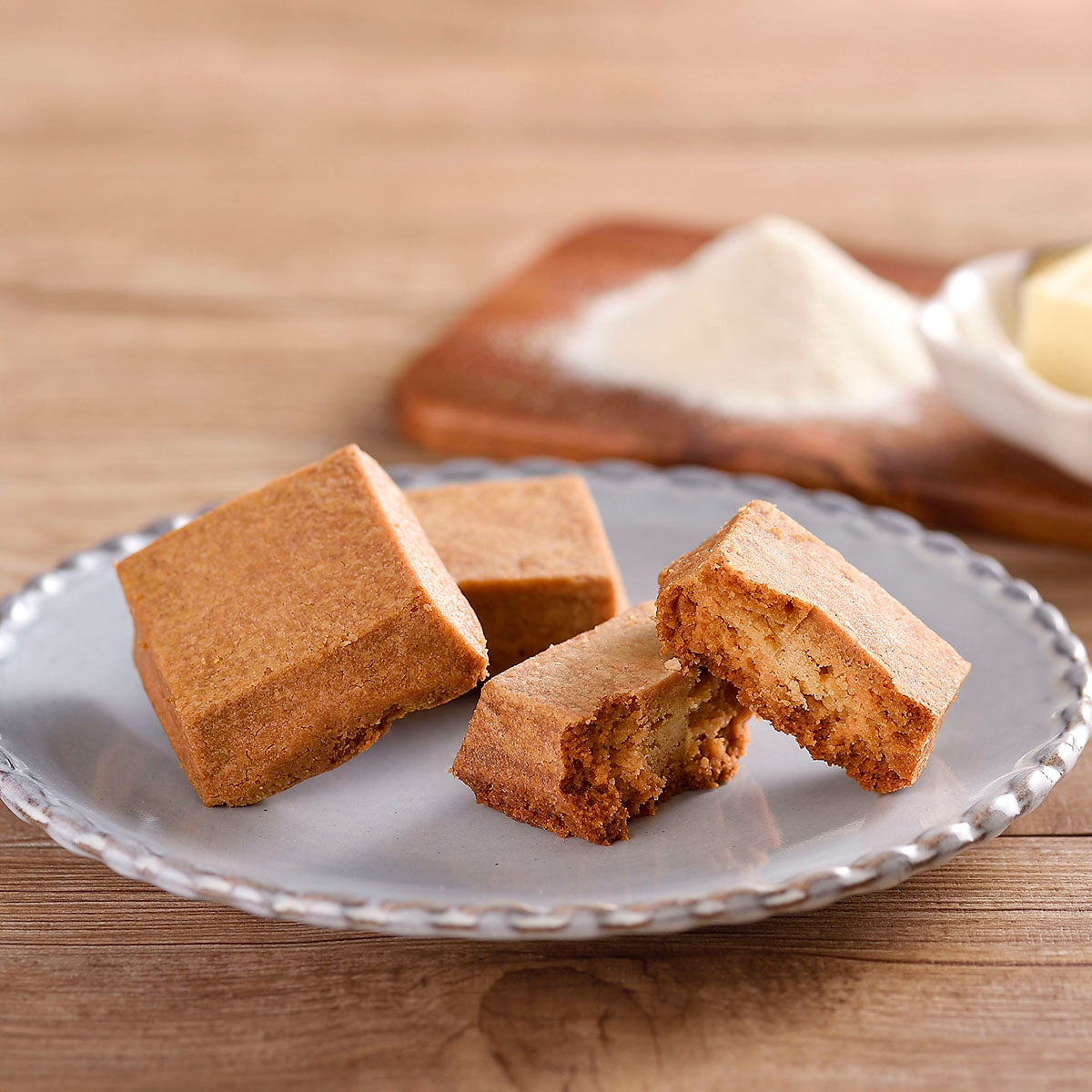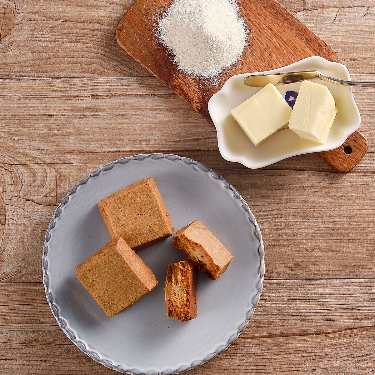 従来のガレットとは異なる食感を生み出すためキューブ状に成形しホロホロとやさしくほどけるような食感を実現しました